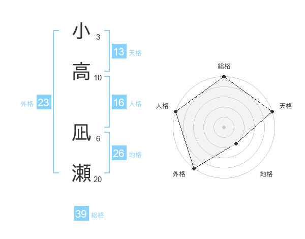 小高 凪瀬さんを姓名の画数から五運を鑑定