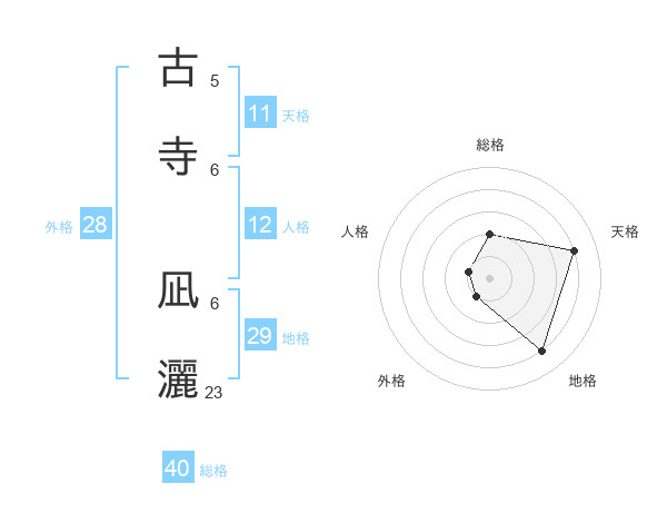 古寺 凪灑さんを姓名の画数から五運を鑑定