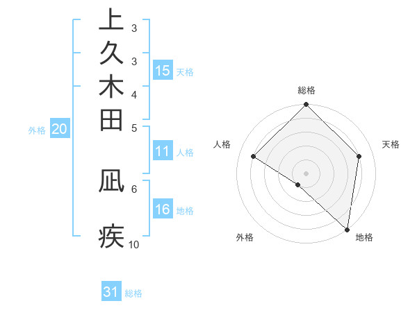 上久木田 凪疾さんの総格は31画の5点!
