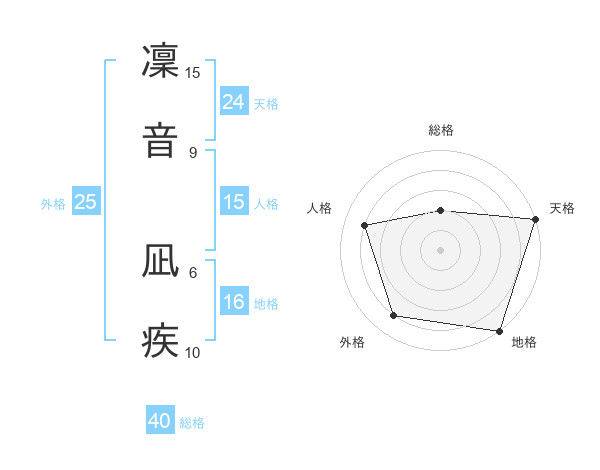 凜音 凪疾さんの天格は24画の5点!