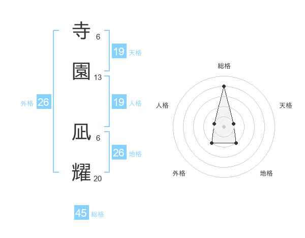 寺園 凪耀さんの外格は26画の2点!