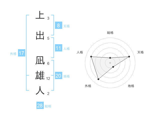 上出 凪雄人さんの地格は20画の1点!