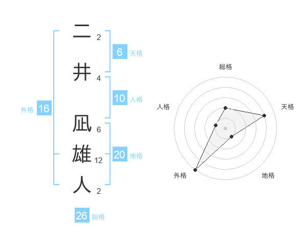 二井 凪雄人さんを姓名の画数から五運を鑑定