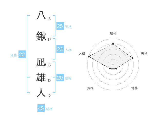 八鍬 凪雄人さんの総格は45画の4点!