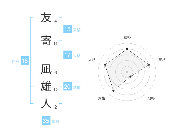 友寄 凪雄人さんの天格は15画の4点!