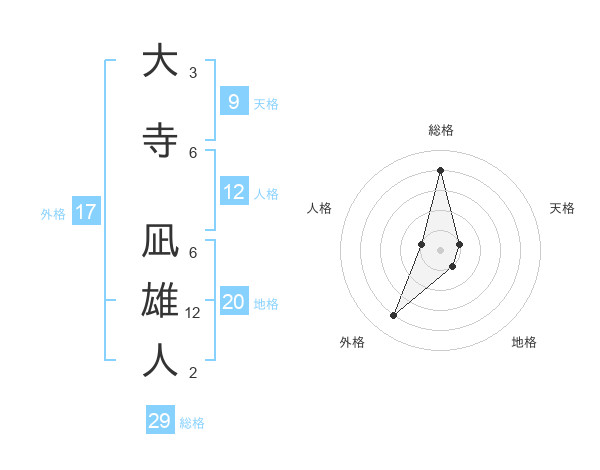 大寺 凪雄人さんを姓名の画数から五運を鑑定