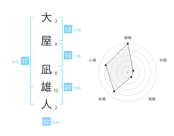 大屋 凪雄人さんを姓名の画数から五運を鑑定