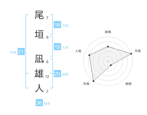 尾垣 凪雄人さんの外格は21画の5点!