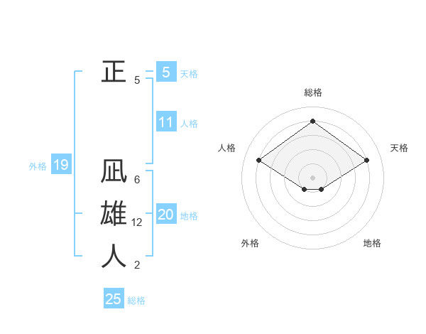 正 凪雄人さんの地格は20画の1点!