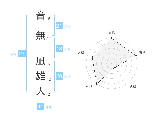 音無 凪雄人さんを姓名の画数から五運を鑑定