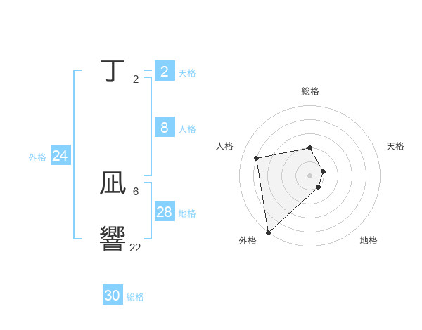 丁 凪響さんの総格は30画の2点!