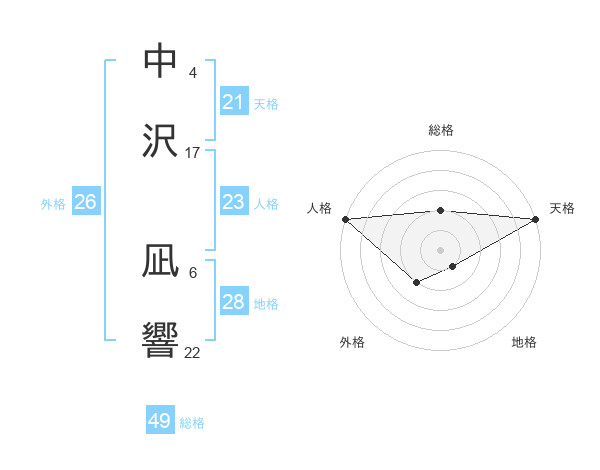 中沢 凪響さんを姓名の画数から五運を鑑定