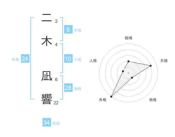 二木 凪響さんの総格は34画の2点!