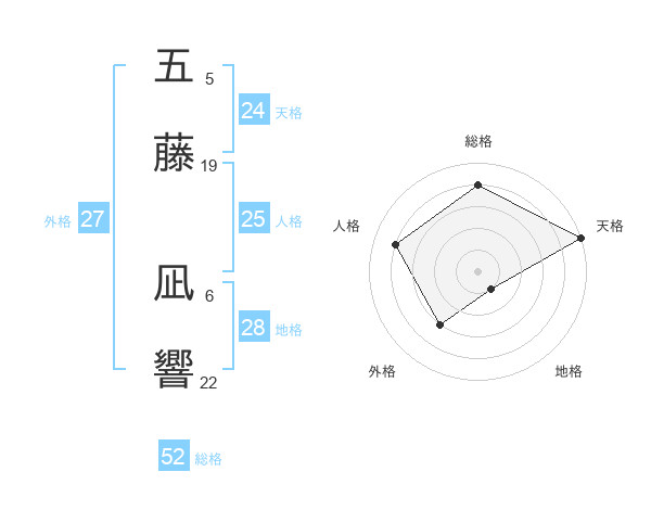 五藤 凪響さんを姓名の画数から五運を鑑定