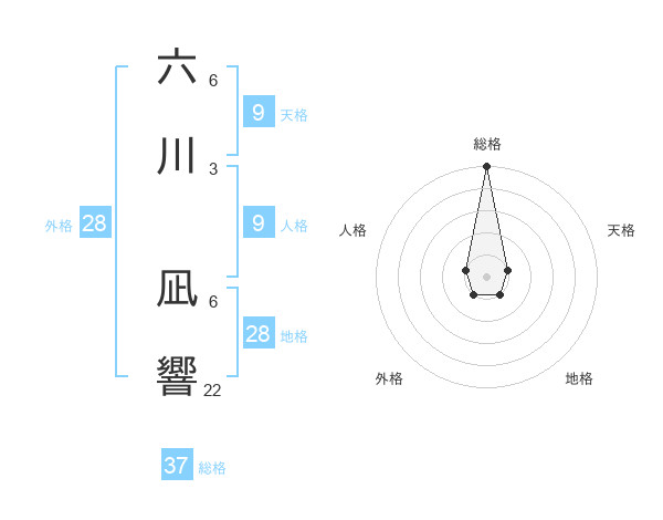 六川 凪響さんの総格は37画の5点!