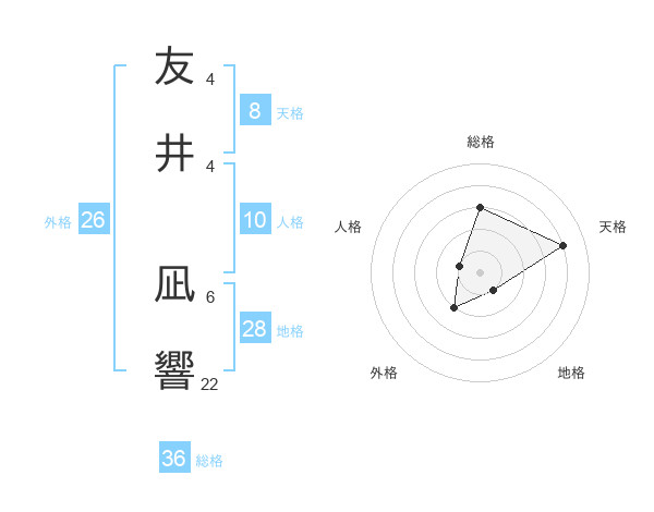 友井 凪響さんの天格は8画の4点!