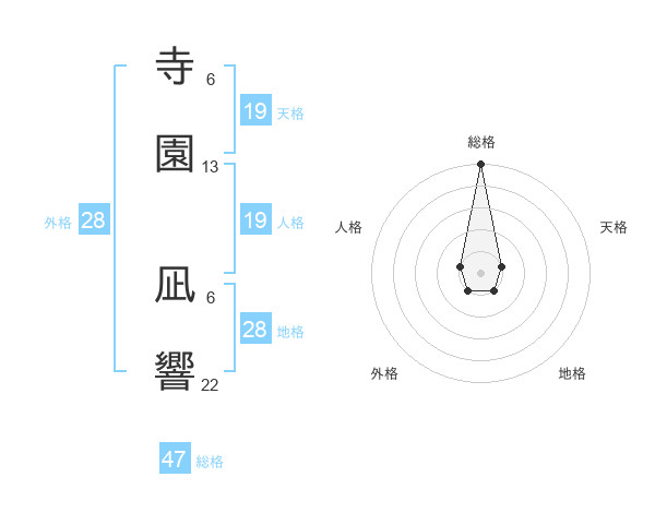寺園 凪響さんの総格は47画の5点!