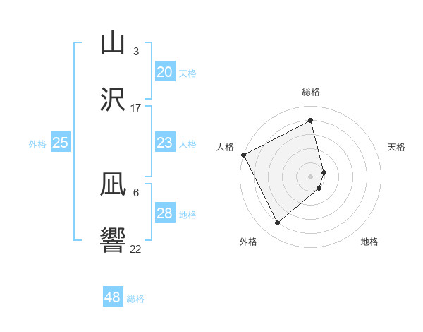山沢 凪響さんの外格は25画の4点!