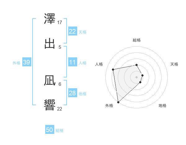 澤出 凪響さんの総格は50画の2点!