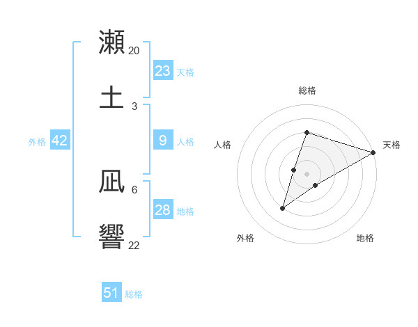 瀬土 凪響さんを姓名の画数から五運を鑑定