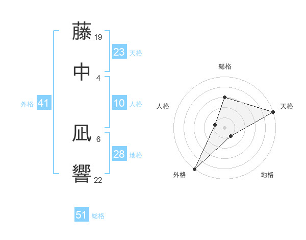 藤中 凪響さんの天格は23画の5点!