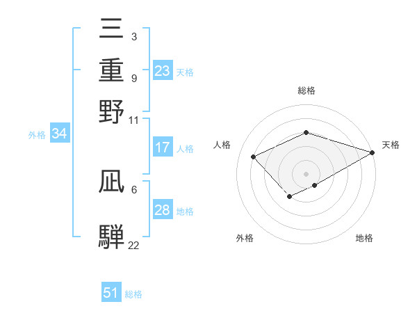 三重野 凪騨さんを姓名の画数から五運を鑑定