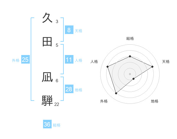 久田 凪騨さんを姓名の画数から五運を鑑定