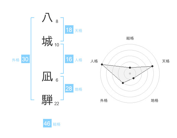 八城 凪騨さんの総格は46画の1点!