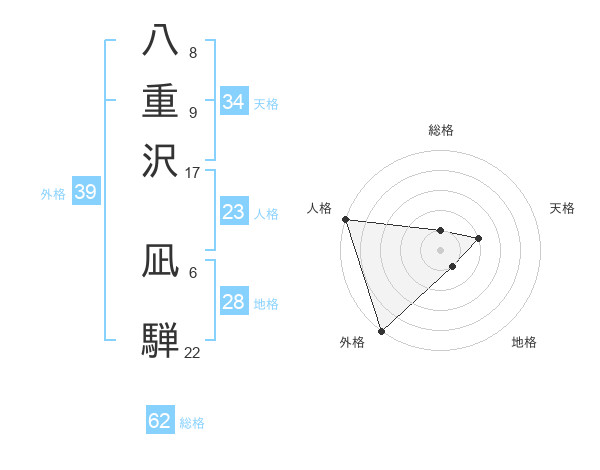 八重沢 凪騨さんを姓名の画数から五運を鑑定