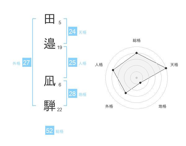 田邉 凪騨さんの総格は52画の4点!