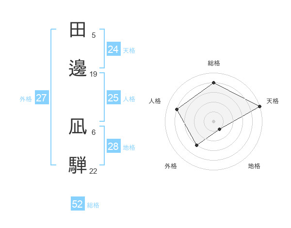 田邊 凪騨さんの天格は24画の5点!