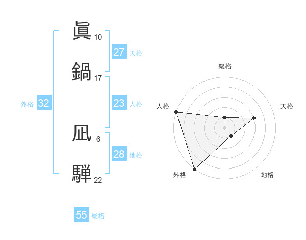 眞鍋 凪騨さんの外格は32画の5点!