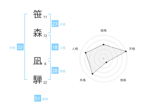 笹森 凪騨さんの天格は23画の5点!