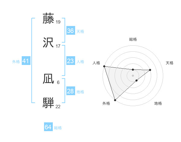 藤沢 凪騨さんの総格は64画の1点!