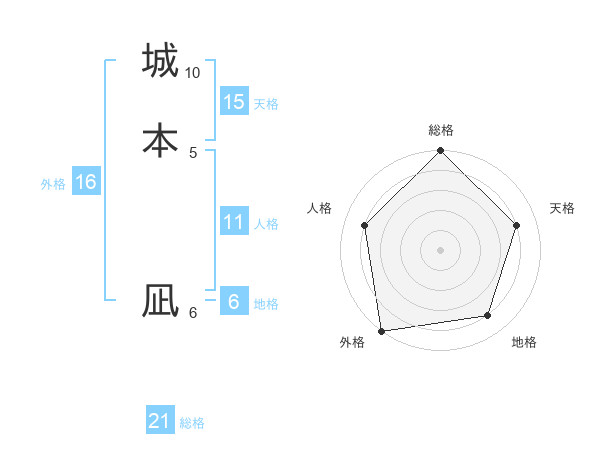 城本 凪さんの総格は21画の5点!