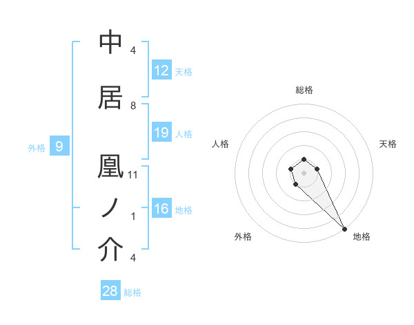 中居 凰ノ介さんを姓名の画数から五運を鑑定