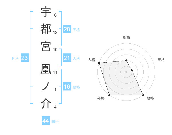 宇都宮 凰ノ介さんの地格は16画の5点!