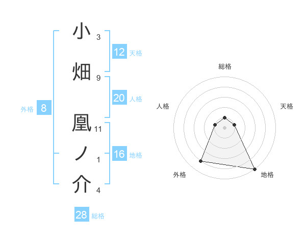小畑 凰ノ介さんを姓名の画数から五運を鑑定