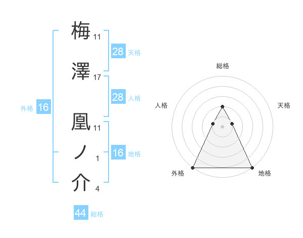 梅澤 凰ノ介さんを姓名の画数から五運を鑑定