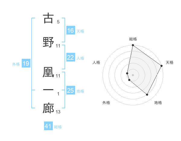 古野 凰一廊さんを姓名の画数から五運を鑑定