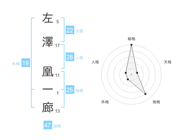 左澤 凰一廊さんを姓名の画数から五運を鑑定