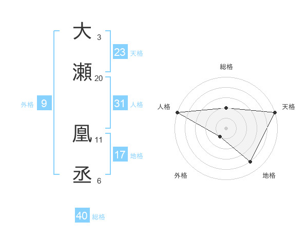 大瀬 凰丞さんの天格は23画の5点!