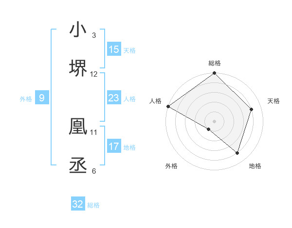 小堺 凰丞さんの総格は32画の5点!