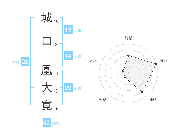 城口 凰大寛さんを姓名の画数から五運を鑑定