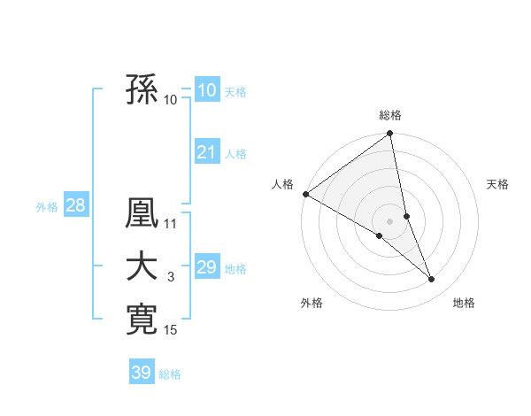 孫 凰大寛さんを姓名の画数から五運を鑑定
