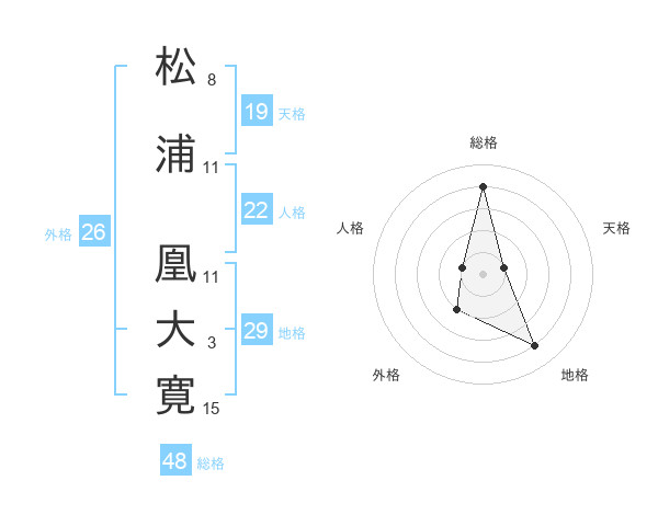 松浦 凰大寛さんを姓名の画数から五運を鑑定