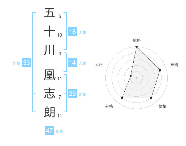 五十川 凰志朗さんを姓名の画数から五運を鑑定