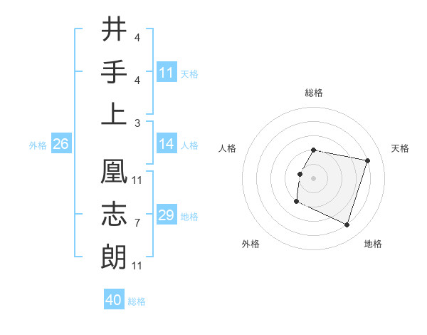 井手上 凰志朗さんの総格は40画の2点!
