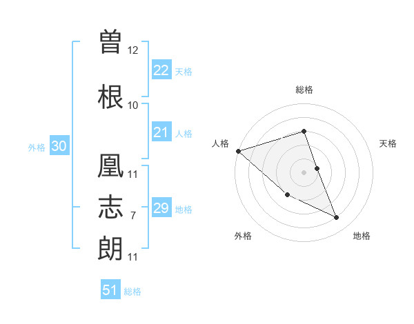 曽根 凰志朗さんを姓名の画数から五運を鑑定