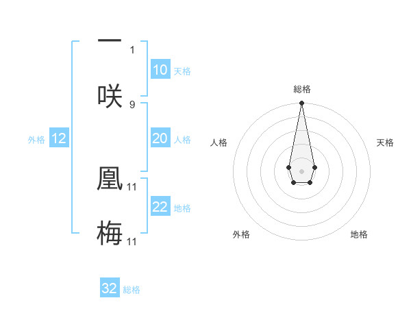 一咲 凰梅さんを姓名の画数から五運を鑑定